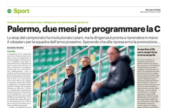 L'edizione odierna del "Giornale di Sicilia" analizza il momento del Palermo. Lo stop degli allenamenti è stato prolungato almeno fino...