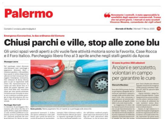 L'edizione odierna del "Giornale di Sicilia" si sofferma sulla Palermo "fantasma" a causa dell'emergenza Coronavirus. Tutti i parcheggi a pagamento...