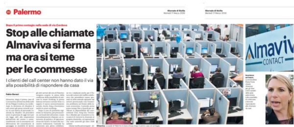 L'edizione odierna del "Giornale di Sicilia" si sofferma sul caso di Coronavirus che ha scosso Almaviva. In una lettera al personale...