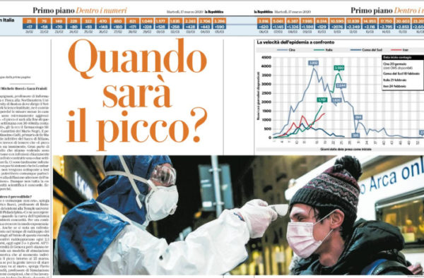 L'edizione odierna de "La Repubblica" riporta le dichiarazioni di alcuni esperti sull'arrivo del picco del Coronavirus in Italia. Vespignani, professore di...