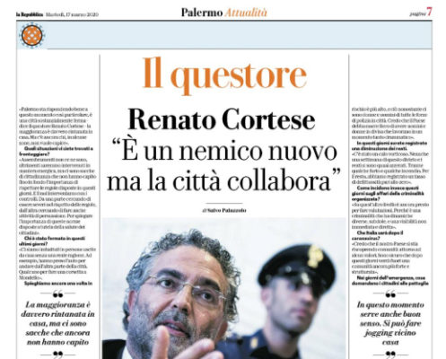 L'edizione odierna de "La Repubblica" riporta le dichiarazioni del Questore di Palermo Renato Cortese: «Palermo sta rispondendo bene a questo momento...