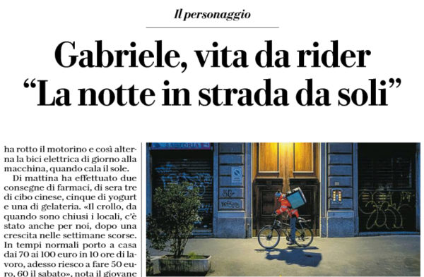Repubblica: “Emergenza Coronavirus. Gabriele, vita da rider «La notte in strada da soli. Palermo…»”