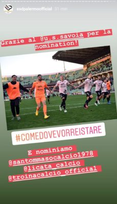 Attraverso le proprie storie Instagram, il Palermo ha ringraziato la nomination del Savoia in merito all'iniziativa "Come dove vorrei stare",...