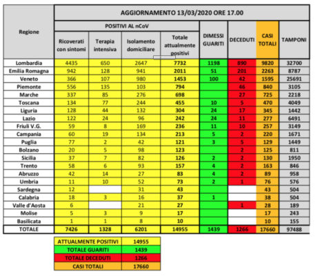 Il capo della Protezione Civile Angelo Borrelli ha comunicato i nuovi dati, aggiornati al 13 marzo, sulla progressione dell’epidemia da...