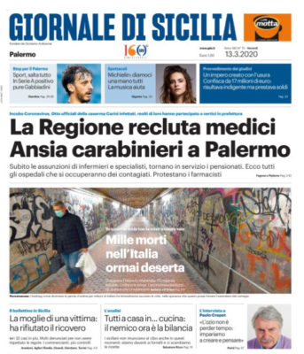 L'edizione odierna del "Giornale di Sicilia" dedica ampio spazio all'emergenza Coronavirus nella sua prima pagina.