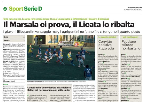 L'edizione odierna del "Giornale di Sicilia" si sofferma sulla vittoria del Licata sul Marsala. I gialloblù ritrovano la concentrazione e lo...