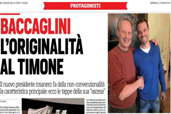 "Un cambio al timone all'insegna dell'originalità: l'ex Iena Paul Baccaglini è il nuovo presidente del Palermo. . Baccaglini aveva conosciuto...