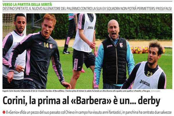"I rosa dopo un giorno di riposo sono tornati ad allenarsi, col Chievo nel mirino, e Corini li ha catechizzati...