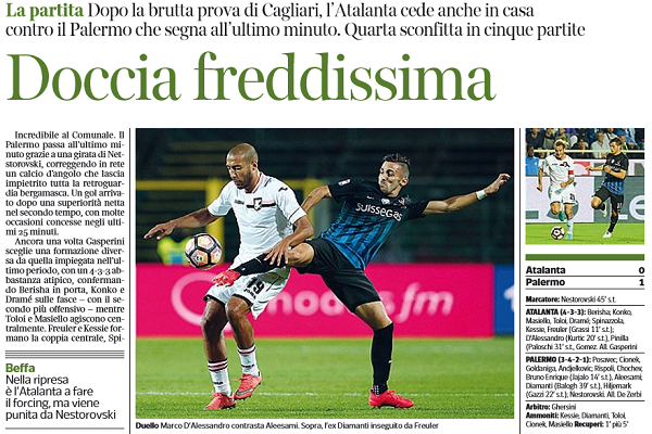 L'edizione bergamasca de "Il Corriere della Sera" analizza il match perso ieri dall'Atalanta contro il Palermo: "Incredibile al Comunale. Il...