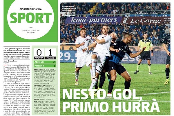 "Prima vittoria del campionato firmata Nestorovski. Cartolina dalla Macedonia per Giampiero Gasperini. fischiato dal pubblico di Bergamo dopo la seconda...