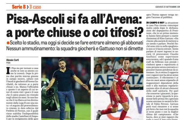 "Il Pisa sta per tornare a casa anche se non sa ancora come la troverà. Dopo le prime due partite...