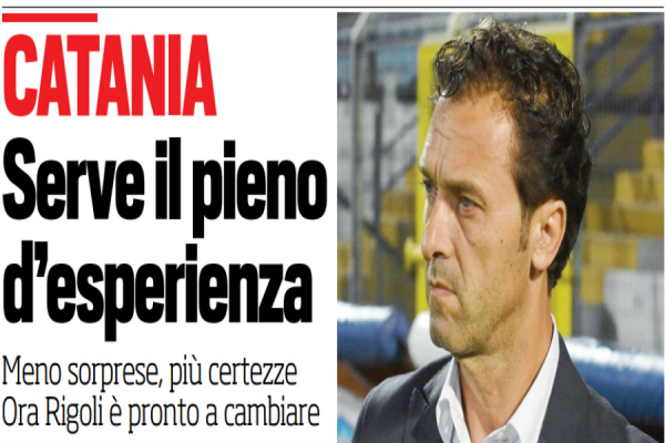 Corriere dello Sport: “Catania, serve il pieno d’esperienza. Meno sorprese, più certezze. Ora Rigoli è pronto a cambiare”