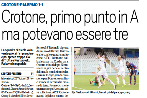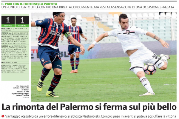 Giornale di Sicilia: “Eppur si muove. Buon punto contro il Crotone, ma serviva la vittoria”