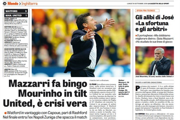 "Gioia e dolore. Anche nei giorni migliori, Walter Mazzarri si porta dietro la coperta di Linus. Il Watford batte il...