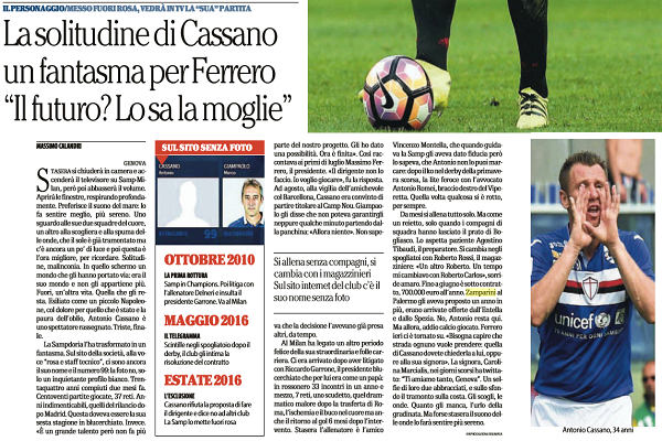 "Stasera si chiuderà in camera e accenderà il televisore su Samp-Milan, però poi abbasserà il volume. Aprirà le finestre, respirando...