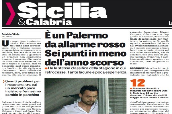 "Un punto dopo le prime tre partite. Esattamente come l’anno della retrocessione. Che il Palermo potesse avere un falsa partenza...