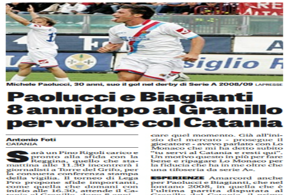 Gazzetta dello Sport: “Paolucci e Biagianti, 8 anni dopo al Granillo per volare col Catania”