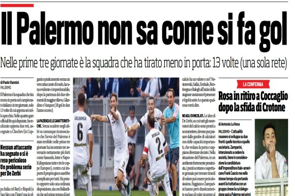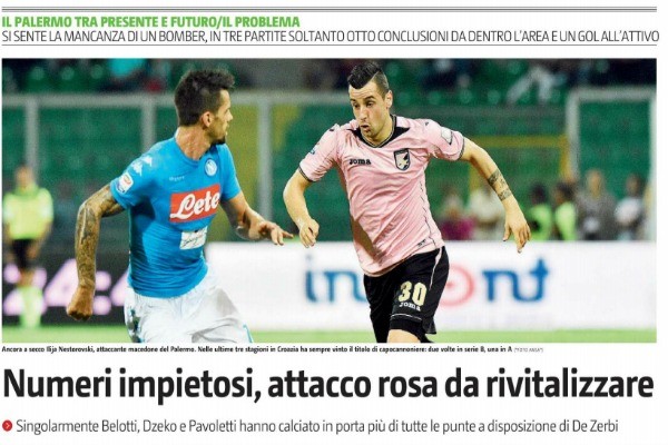 L'edizione odierna de "Il Giornale di Sicilia" ha sottolineato i problemi del reparto avanzato rosanero: "Centravanti cercasi. Un annuncio disperato...