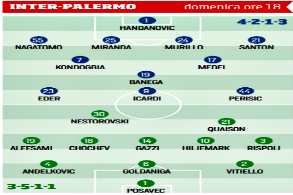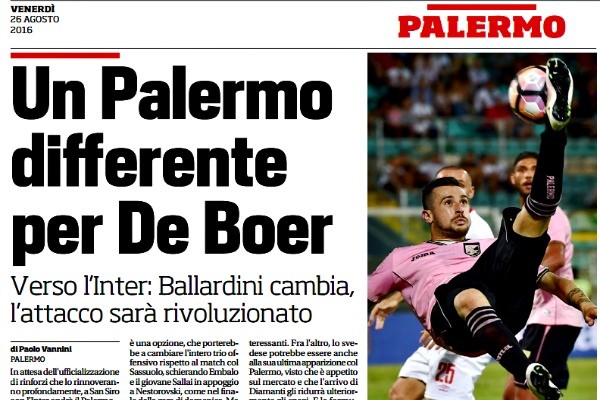 "In attesa dell'ufficializzazione di rinforzi che lo rinnoveranno profondamente, a San Siro con l'Inter andrà il Palermo... vecchio, col compito...