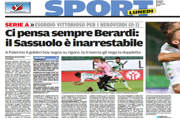 "Il Sassuolo è già squadra, e che squadra, ed in più ieri sera ha proposto un Berardi sontuoso, ispirato, voglioso...