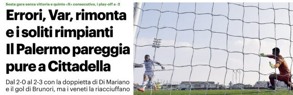 L'edizione odierna de "Il Giornale di Sicilia" si sofferma sulle pagelle del match pareggiato tra Cittadella e Palermo.