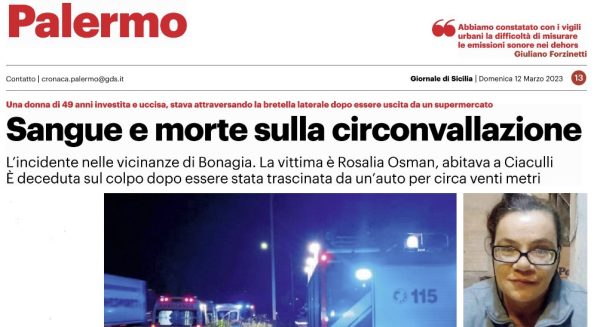 L'edizione odierna de "Il Giornale di Sicilia" si sofferma sull'incidente mortale alla Circonvallazione. Tre morti in poche settimane, una strada...