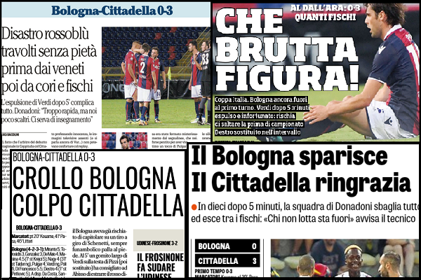 Bologna: “Gonzalez, che disastro!”. Il centrale bocciato dai quotidiani dopo lo 0-3 contro il Cittadella (VIDEO)