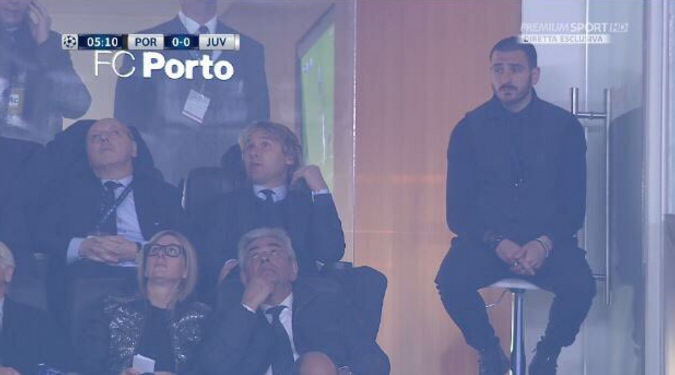 Il difensore della Juventus Leonardo Bonucci, durante l’evento “Amici dei Bambini”, è salito sul palco e ha spiegato il motivo per la quale durante la gara di Champions League contro il Porto era seduto su uno sgabello. Queste le sue dichiarazioni: «Ero seduto in un posto dove non potevo vedere la partita come mi sarebbe piaciuto, anche perché sono abituato a stare in campo. Una volta ero in panchina e sono stato ammonito. Mi sono alzato perché non ce la facevo più, ho trovato questo sgabello e mi sono seduto li, ma sono rimasto soltanto 2 minuti».