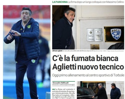In via Ferramola si attende solo Massimo Cellino. Il presidente fa la sua comparsa alle 15.12, non rilascia dichiarazioni ma annuisce quando gli viene chiesto se è necessaria una svolta. Segue l’incontro con Alfredo Aglietti e l’accordo viene trovato in poco tempo, sulla base di un contratto fino al 30 giugno 2023 con opzione di rinnovo per un’altra stagione. Da una parte ci sono Massimo Cellino e Luigi Micheli, direttore generale e consigliere di amministrazione del club, dall’altra il tecnico toscano assistito dal procuratore Giorgio De Giorgis, tra l’altro ex attaccante del Brescia (37 presenze e 2 reti segnate tra il 1985 e il 1988). Lecifre? Si parla di un ingaggio da 100 mila euro con contratto a salire a 180 mila euro. Aglietti riparte da Brescia dopo l’esperienza alla Reggina della scorsa stagione e dopo aver rifiutato in precedenza la panchina del Cosenza (poi affidata a William Viali) e un sondaggio del Venezia (ora guidato da Paolo Vanoli).