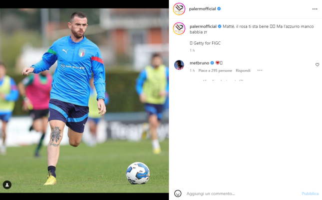 Brunori in Nazionale, il Palermo sui social: “Il rosa ti sta bene Mattè, ma l’azzurro manco babbìa” (FOTO)