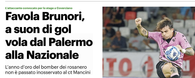 L’edizione odierna de “Il Giornale di Sicilia” si sofferma sulla convocazione di Brunori in azzurro.