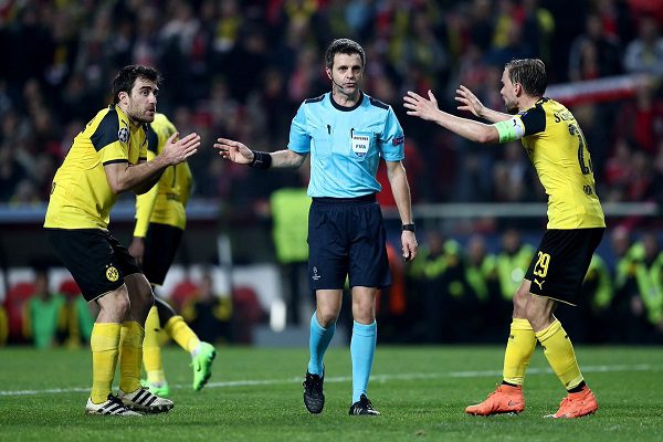 Neanche il tempo di placarsi la bufera italiana dopo Juventus-Inter, che per Nicola Rizzoli se ne apre un’altra, ma stavolta a livello europeo. Nella serata di Champions giocata ieri il fischietto italiano ha diretto Benfica-Borussia Dortmund terminata 1-0 per la squadra di casa. Nel corso del primo tempo non viene fischiato un fallo alla squadra tedesca, che prontamente sul proprio profilo Twitter pubblica una foto scrivendo: “Fallo, fallo, FALLO!”. L’episodio recriminato è un fallo abbastanza netto del portiere portoghese Ederson, in area di rigore, sull’attaccante giallonero Dembélé. Di seguito il tweet in questione: