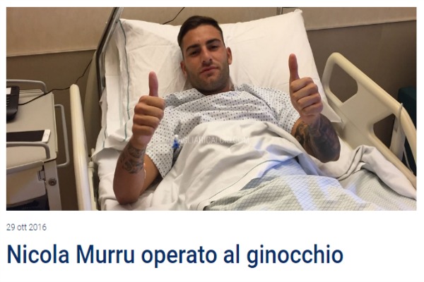 “Il giocatore Nicola Murru è stato sottoposto questa mattina ad intervento chirurgico per la reinserzione del legamento collaterale laterale del ginocchio sinistro alla testa del perone.