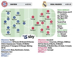 L'edizione odierna de "Il Corriere dello Sport" si sofferma sulle probabili formazioni del match tra Bayern e Real in Champions...