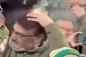 Momenti di grande paura sugli spalti in occasione di Hibernian-Celtic in Scozia: i capelli di un tifoso hanno preso fuoco....