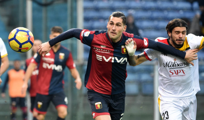 GENOA, ITALY - DECEMBER 23: Aleandro Rosi (Genoa) and Lorenzo Venuti (Benevento) during the serie A match between Genoa CFC and Benevento Calcio at Stadio Luigi Ferraris on December 23, 2017 in Genoa, Italy. (Photo by Paolo Rattini/Getty Images)