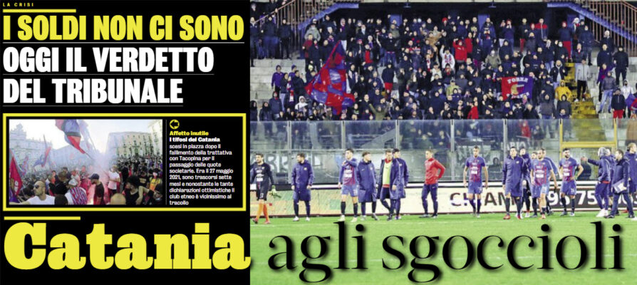 Il giorno del giudizio è arrivato. Oggi il Catania conoscerà contenuti del provvedimento del tribunale dopo la proroga dell’esercizio provvisorio scaduta ieri. Il club potrà continuare l’attività a tempo o verrà decretata la fine dei giochi. Fino a ieri sera i soci della Sigi avevano racimolato meno della metà dei 600mila euro pretesi dai giudici per continuare per altri due mesi l’attività accordando una “coda” dell’esercizio provvisorio. L’intenzione dei legali della cordata etnea è chiedere di dilazionare in due tranche quella somma che Sigi dovrebbe versare nelle casse del Calcio Catania.