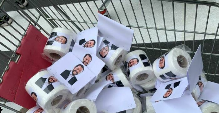Catania: distribuiti a una manifestazione rotoli di carta igienica con la faccia di Salvini (FOTO)