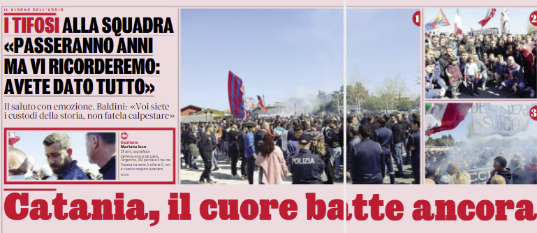 L’edizione odierna de “La Gazzetta dello Sport” si sofferma sul Catania e “l’ultimo saluto” dei tifosi rossazzurri a Torre del Grifo.