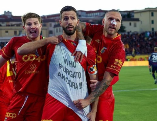 Nel pomeriggio il Catanzaro ha vinto 2 a 0 il derby contro il Cosenza. Pietro Iemmello ha segnato il gol che ha sbloccato la partita, facendo un’esultanza che ricorda quella di Totti l’11 aprile 1999, in occasione della rete del 3-1 contro la Lazio:
