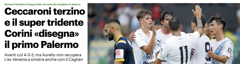 Il match dell’Unipol Domus sarà anche il banco di prova del nuovo modulo di Corini, quel 4-3-3 che aveva provato tra settembre e novembre 2022 senza riscuotere particolare successo: in quel caso però il Palermo veniva da un ritiro con un altro allenatore e un altro schema di gioco (4-2-3-1), stavolta il tecnico di Bagnolo Mella ha avuto più di un mese per adattare i giocatori al 4-3-3 e spera, alla prima uscita ufficiale, di vedere messi in pratica i frutti del lavoro svolto in Veneto e Trentino.