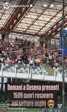 “Domani a Cesena presenti 1509 cuori rosanero nel settore ospiti”, questo il messaggio del club tramite una storia Instagram. I tifosi dei rosanero si confermano quindi numerosi anche in questa trasferta, nonostante l’obbligo di tessera imposto.