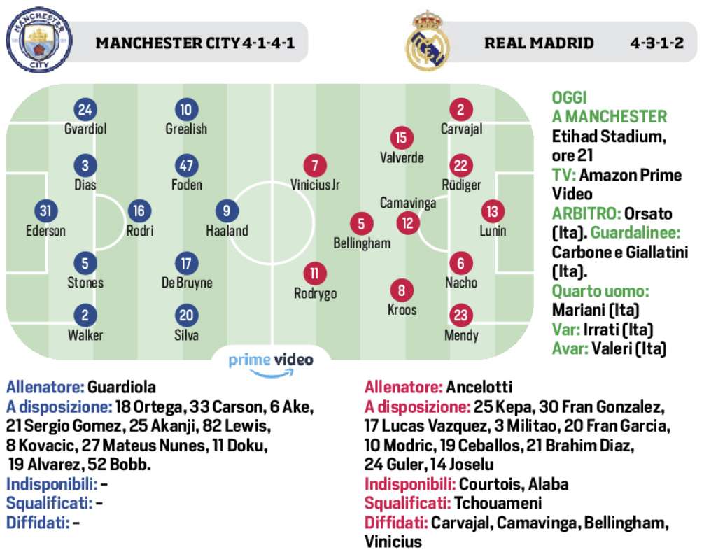City-Real Madrid è Foden e De Bruyne versus Rodrygo e Vinicius. È il calcio che non conosce limiti di velocità. Ma è ovviamente e soprattutto il confronto tra Guardiola e Ancelotti.