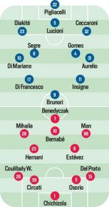 All.: Mignani. A disp.: 1 Desplanches, 2 Graves, 3 Lund, 15 Marconi, 18 Nedelcearu, 25 Buttaro, 6 Stulac, 53 Henderson, 80 Coulibaly, 7 Mancuso, 27 Soleri, 70 Traorè. Squal.: -. Diff.: Segre, Nedelcearu, Ceccaroni. Ind.: Ranocchia, Vasic. Ultime: Chance dal 1’ per Aurelio. Insigne per Mancuso.