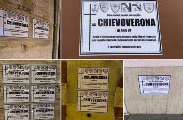 Gli ultrà del Chievo hanno reagito con un messaggio esposto per tutta la città alla mancata ammissione del club al campionato.