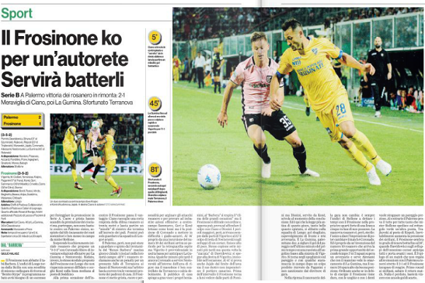 “Il Frosinone non abbatte il tabù Barbera. L’undici di Longo torna dalla Sicilia con una sconfitta di misura e nella gara di ritorno al “Benito Stirpe” in programma sabato avrà bisogno di un successo per festeggiare la promozione in Serie A. Cuore e grinta hanno scandito la prestazione dei ciociari ma, purtroppo, non sono bastate contro un Palermo cinico, sospinto dal tifo incassante dei suoi sostenitori e ben messo in campo da mister Stellone. Sorprende lo schieramento iniziale rosanero che propone un “3-5-2″ con Coronado libero di inventare soluzioni offensive per La Gumina e Nestorovski. […]”. Questo quanto analizzato dall’edizione odierna di “Ciociaria Oggi”.