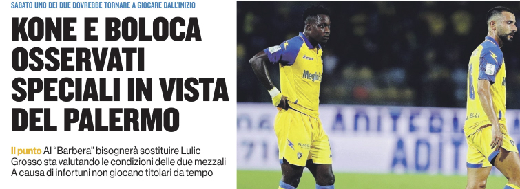 Ciociaria Oggi: “Frosinone, Kone e Boloca osservati speciali in vista del Palermo”