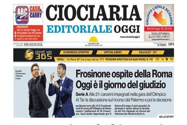 “Frosinone, oggi il giorno del Giudizio” questo titola l’edizione odierna di “Ciociaria Oggi” in riferimento alla vicenda riguardante la finale playoff contro il Palermo. Oggi il Tar infatti, si esprimerà sul riscorso presentato da Maurizio Zamparini.