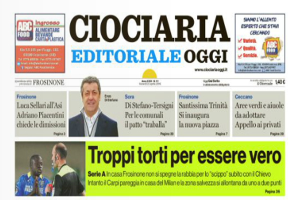 Continua la polemica condotta dal quotidiano “Ciociaria Oggi” in merito ai presunti errori arbitrali contro il Frosinone, prossimo avversario del Palermo. L’edizione odierna del giornale ciociaro infatti titola: “Troppi torti per essere vero“.