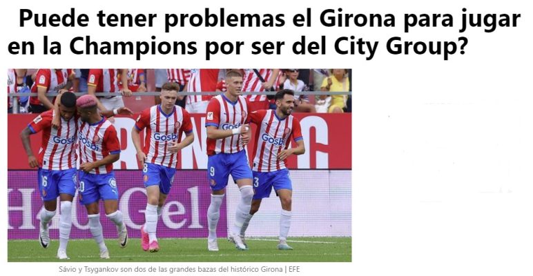 Il portale “Sport.es”, intanto, espone il dilemma delle multiproprietà in caso di Champions League il Girona visto il legame con il City Football Group e per questioni legali, ci sono alcuni dubbi sulla sua possibilità di partecipare al massimo torneo continentale. Va ricordato che nel 2017 il Girona è stato acquisito in parti uguali dal City Football Group e dal Girona Football Group, con il 44,3% delle azioni ciascuno. Il restante 12% è suddiviso tra i piccoli azionisti. Dopo essere stato promosso in Prima Divisione nella stagione 2021/22, il Girona di Míchel è diventato una delle rivelazioni e la scorsa stagione ha lottato fino all’ultima giornata per un posto nella Conference League. L’investimento del City Football Group, proprietario tra gli altri club di un Manchester City che ha un posto in Europa nella prossima edizione della Champions League, ha lasciato il dubbio se i biancorossi possano giocare nelle competizioni continentali, per cui il Girona non è sicuro la sua partecipazione alla Champions League se finalmente riuscirà ad accedervi.